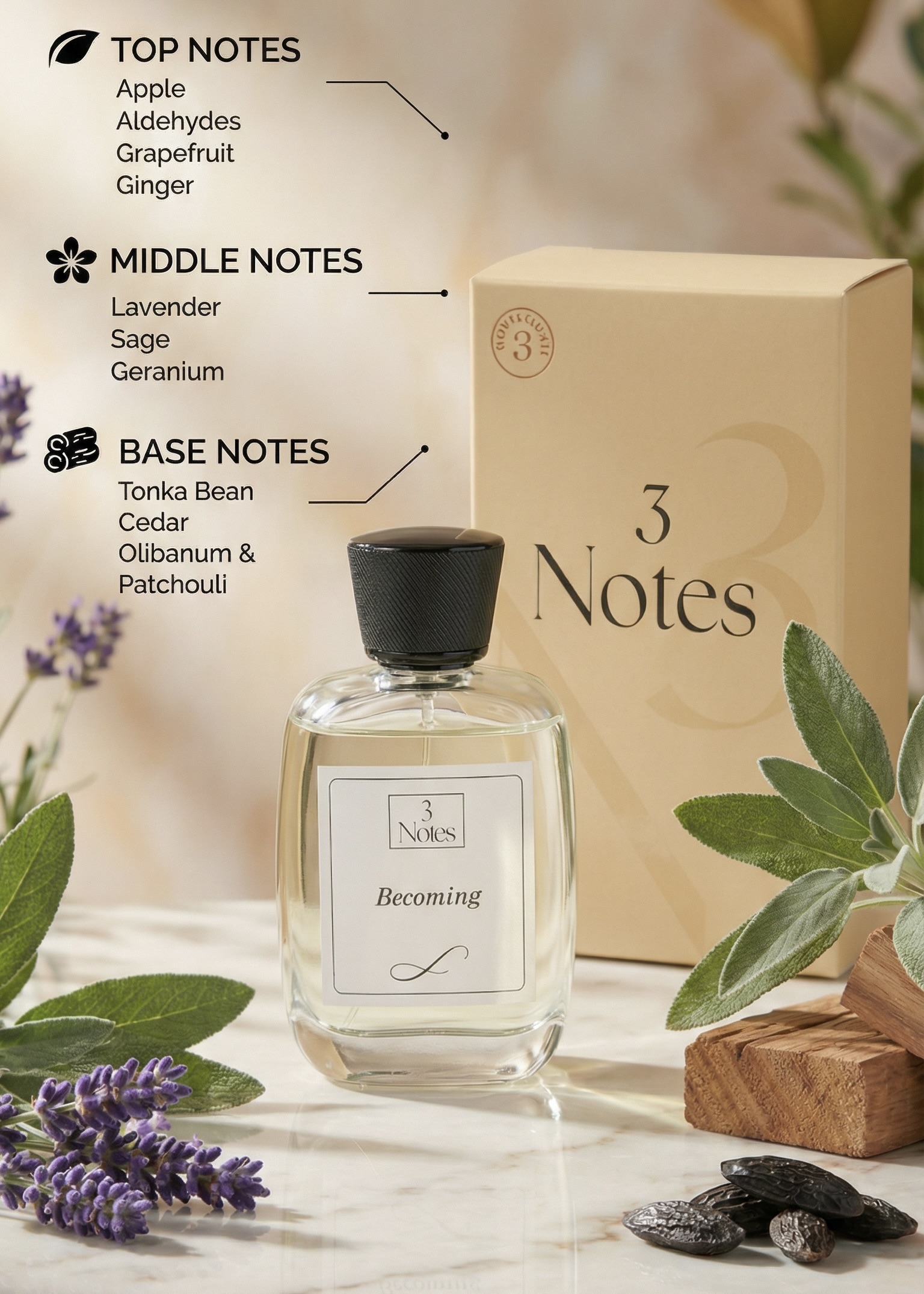 Becoming by 3Notes is a smooth, musky, and sophisticated Eau de Parfum designed for men who embody quiet strength and effortless masculinity.