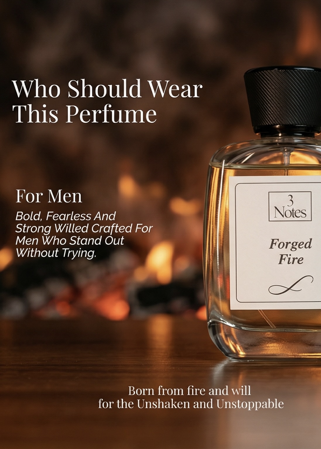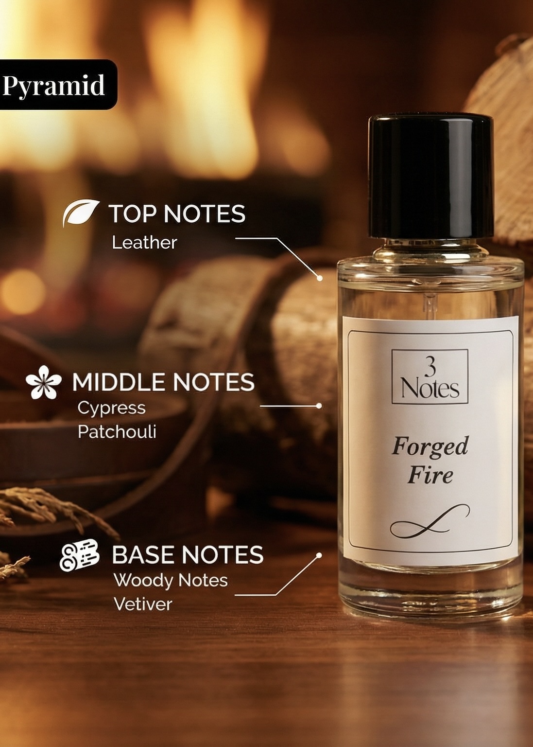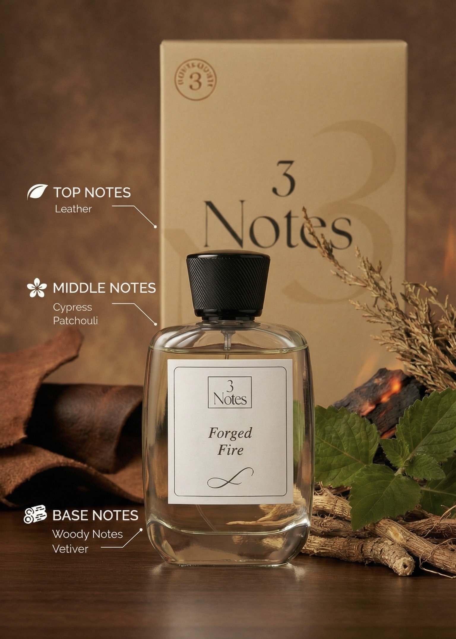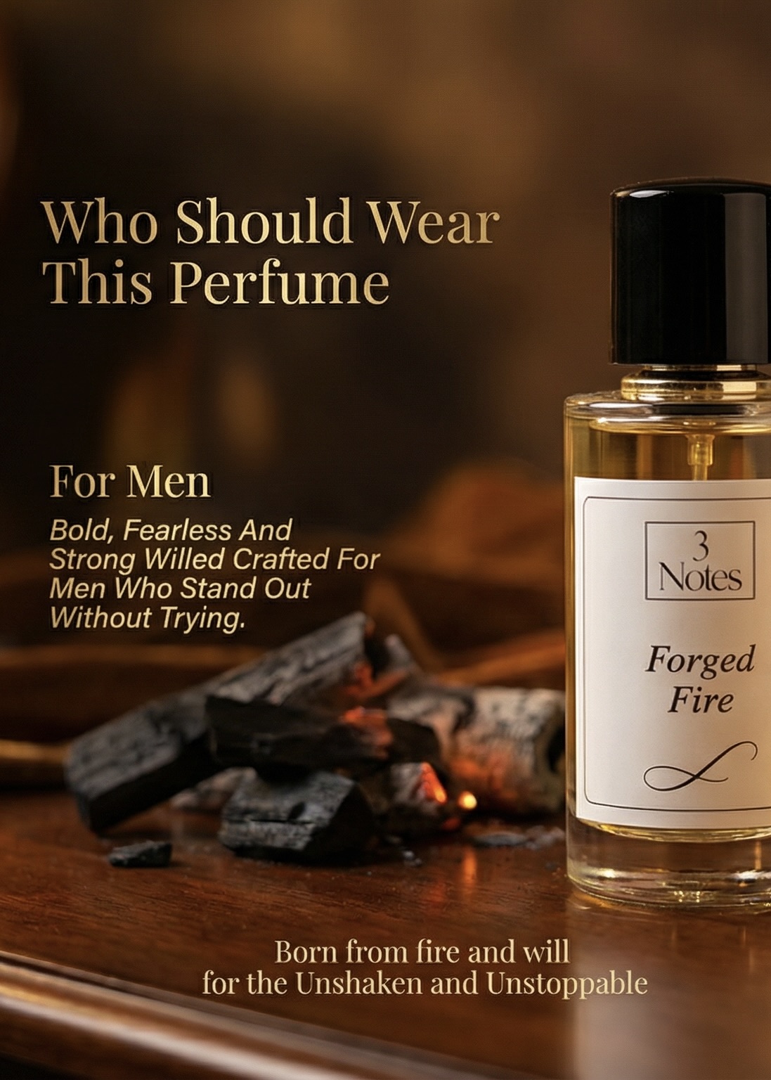 Forged Fire by 3Notes is a bold, smoky, and resinous Eau De Parfum for men, designed for those who command attention and embody power.