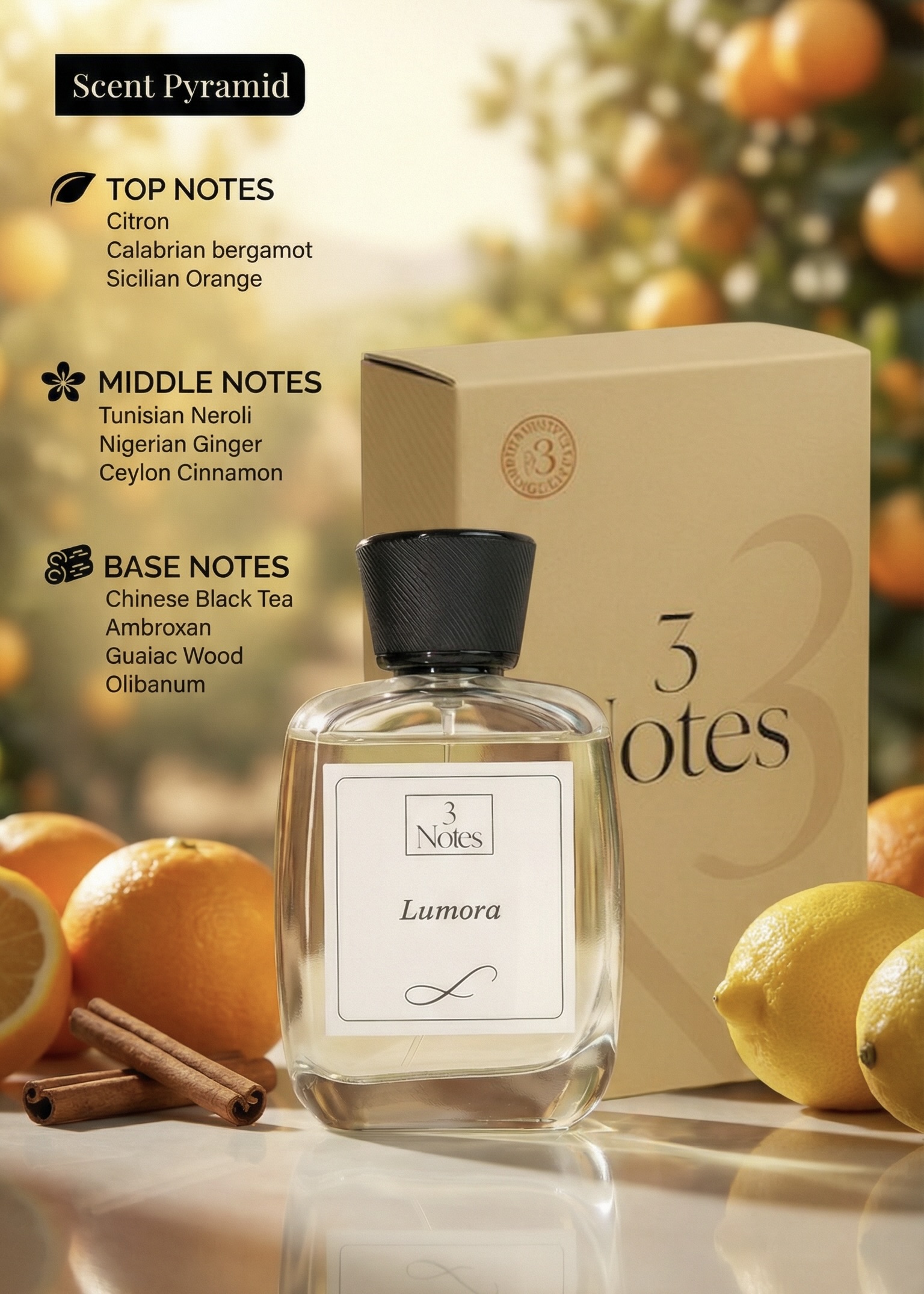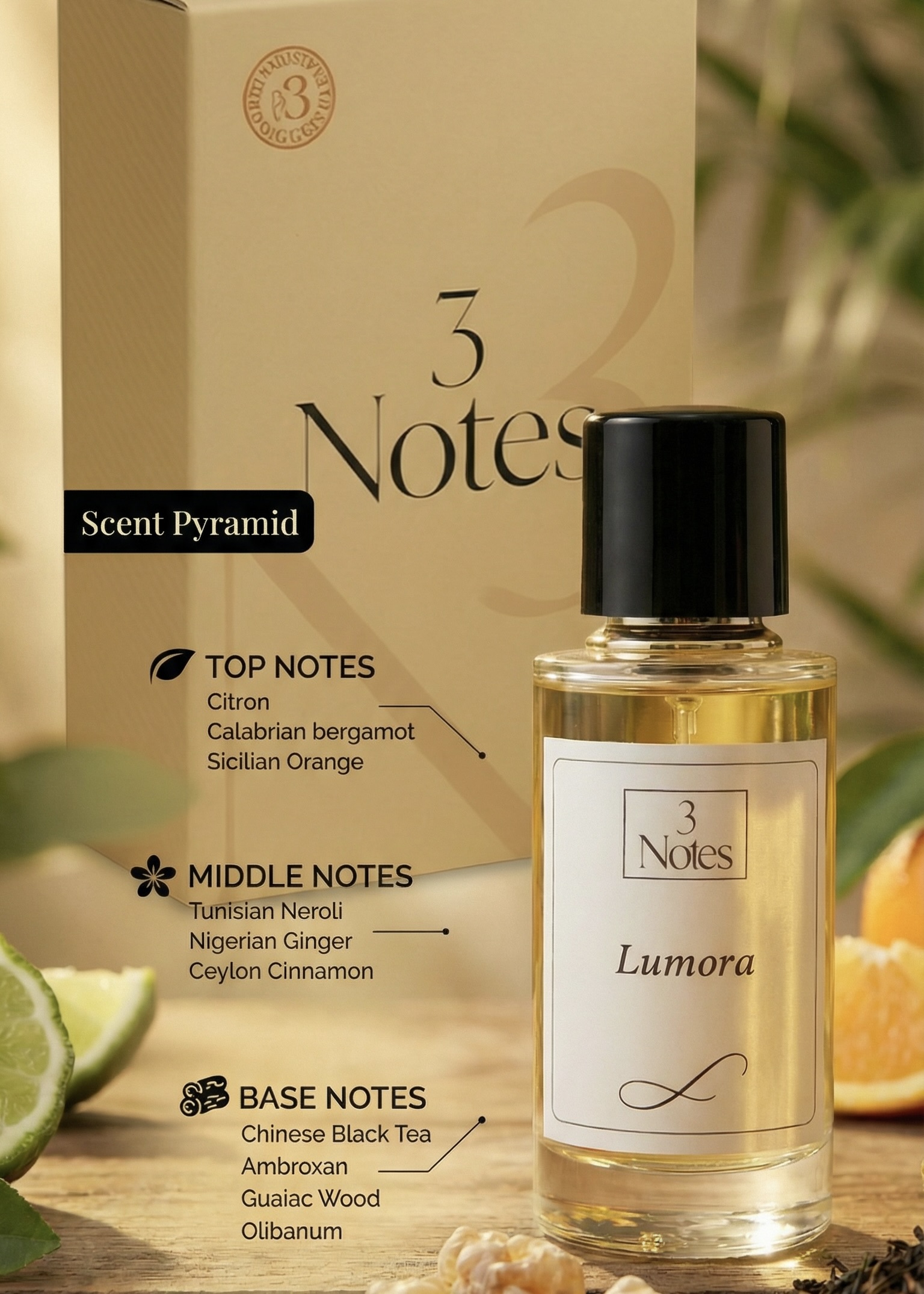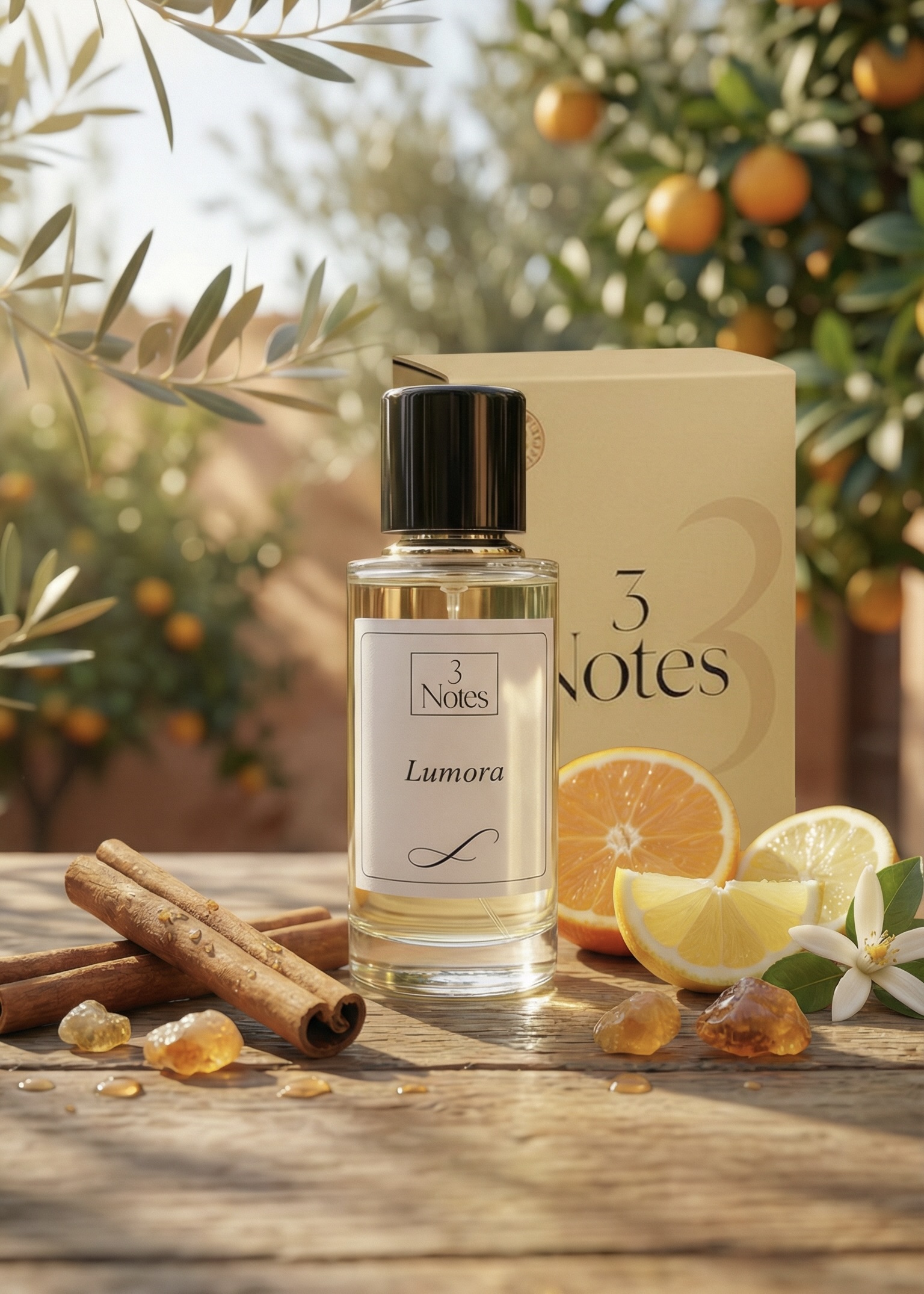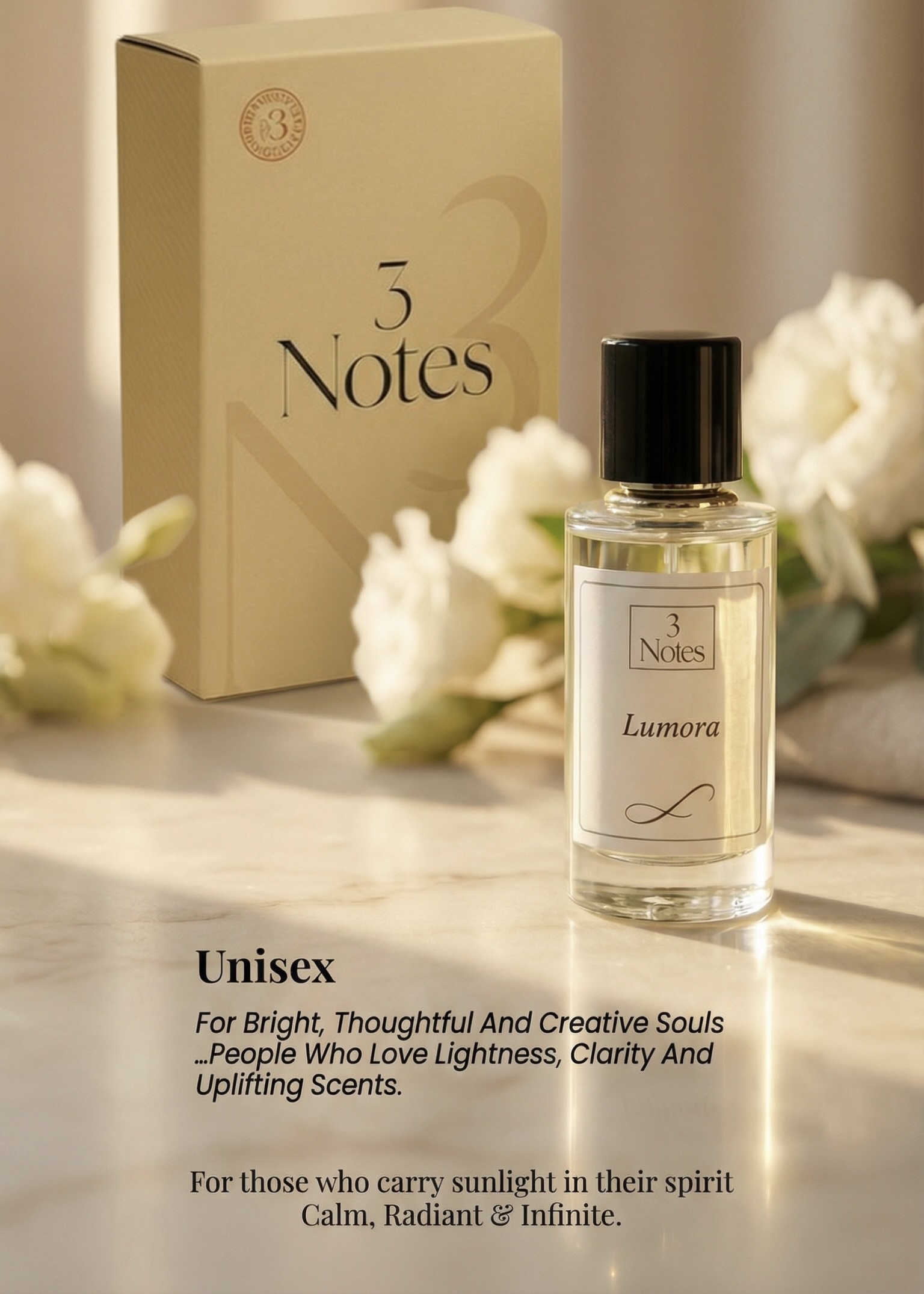 Lumora by 3Notes is a creamy, floral, and radiant perfume inspired by the soft light of moonlit nights and quiet joy.
