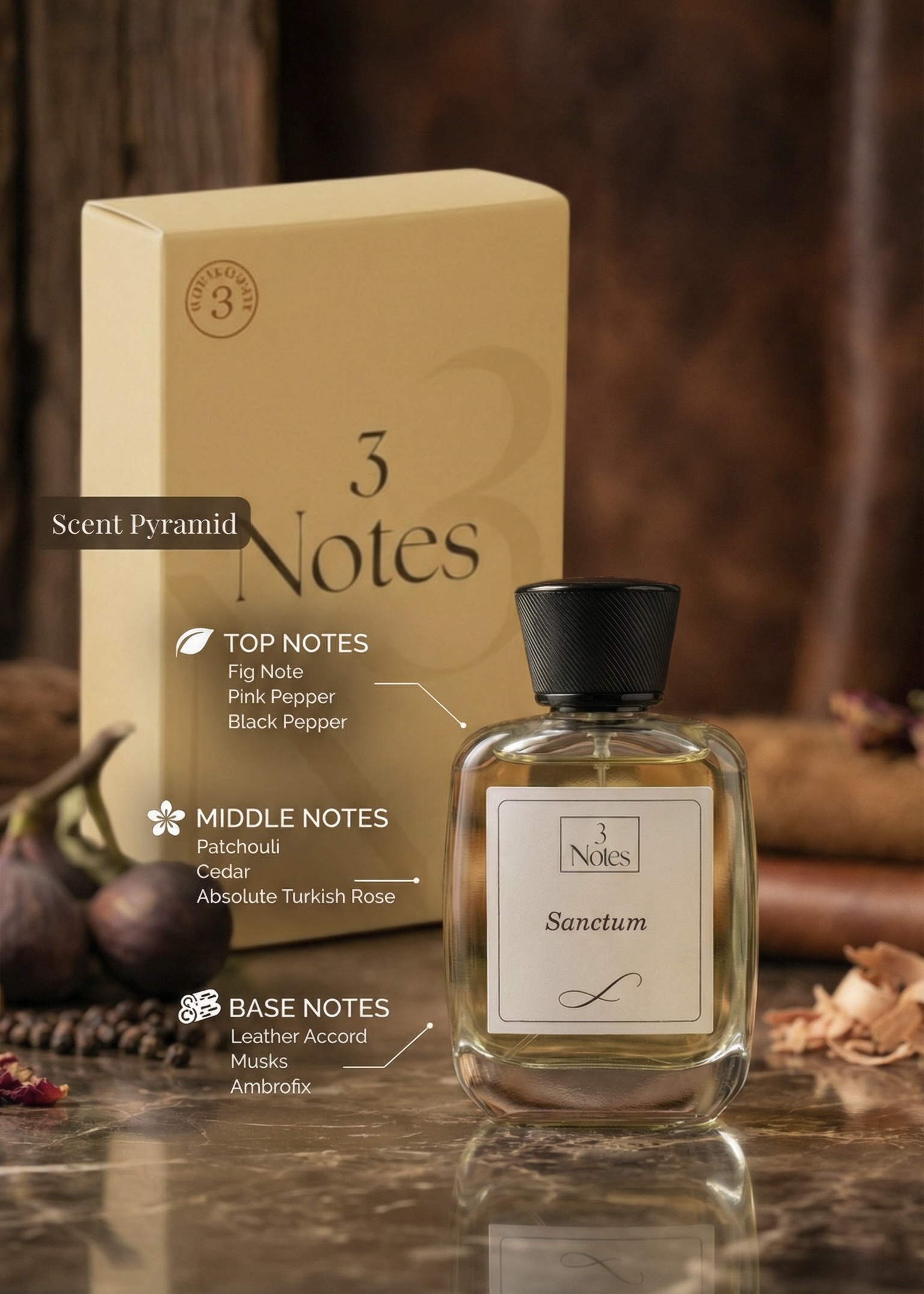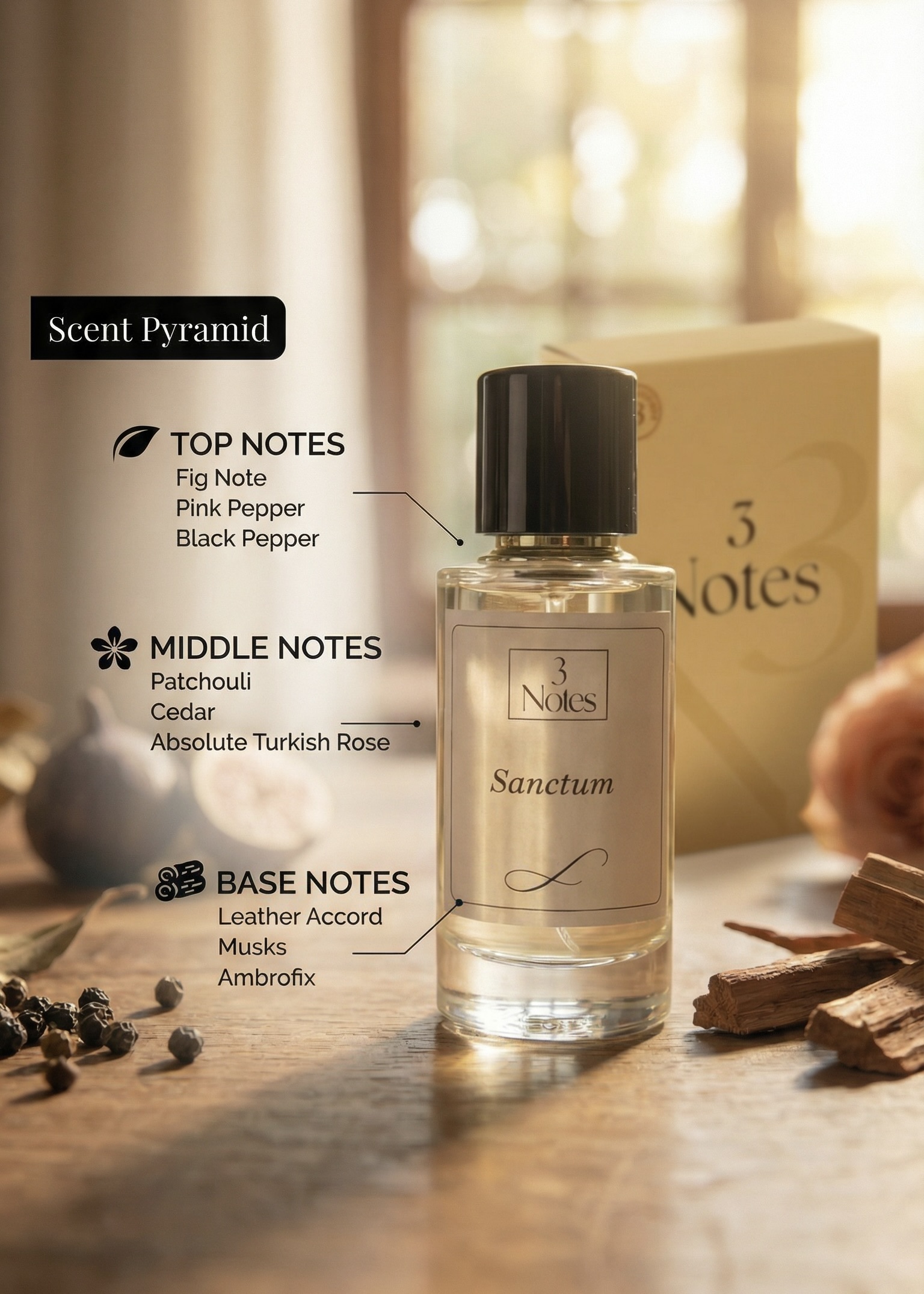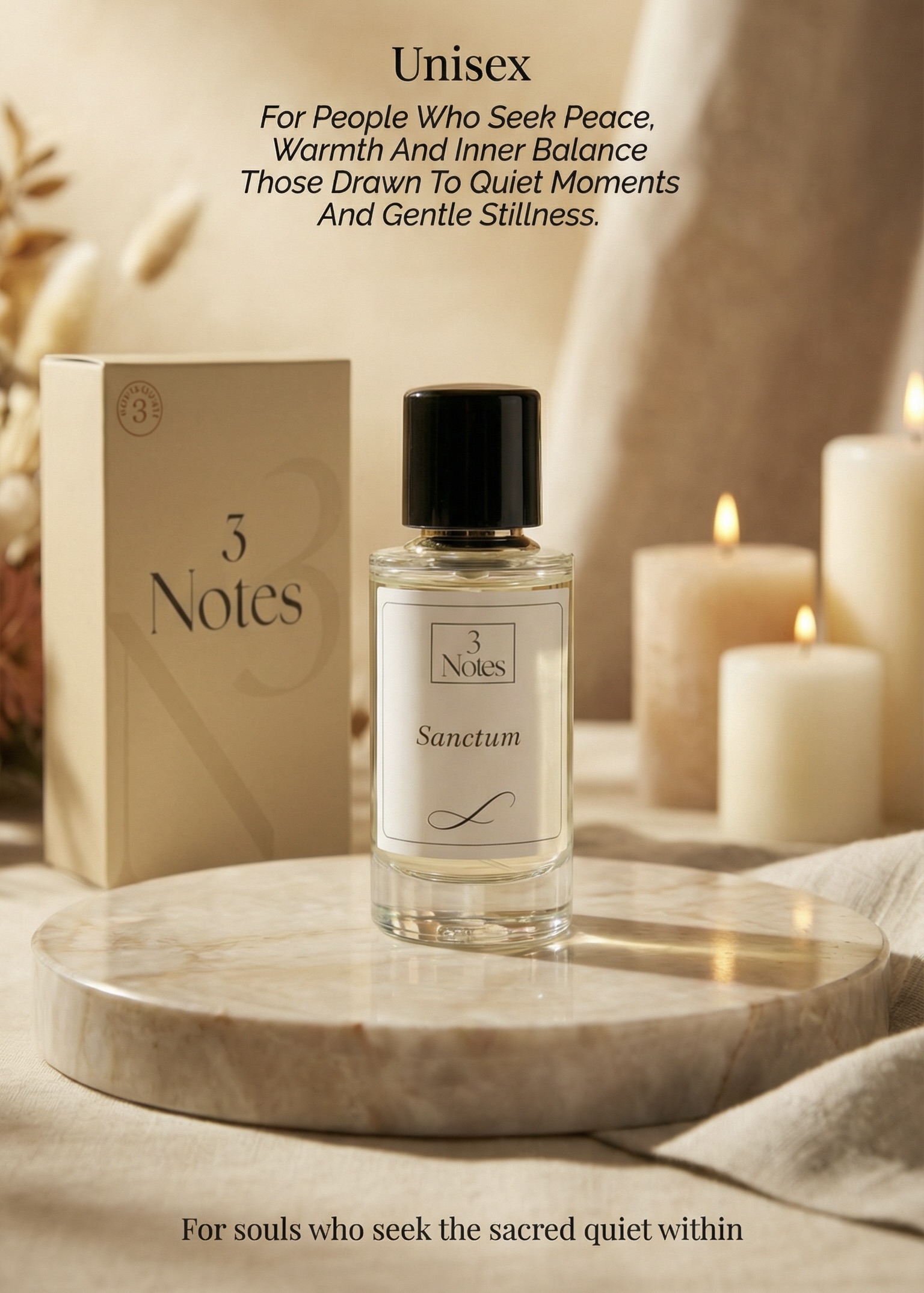 Sanctum by 3 Notes is a creamy, woody perfume inspired by the serene stillness of stone temples and sacred woods. Crafted with premium IFRA-approved ingredients, it blends Indian sacred traditions with modern perfumery for a subtle, meditative signature scent. Elegant, grounding, and gender-neutral, Sanctum offers mindful sophistication for everyday wear.
