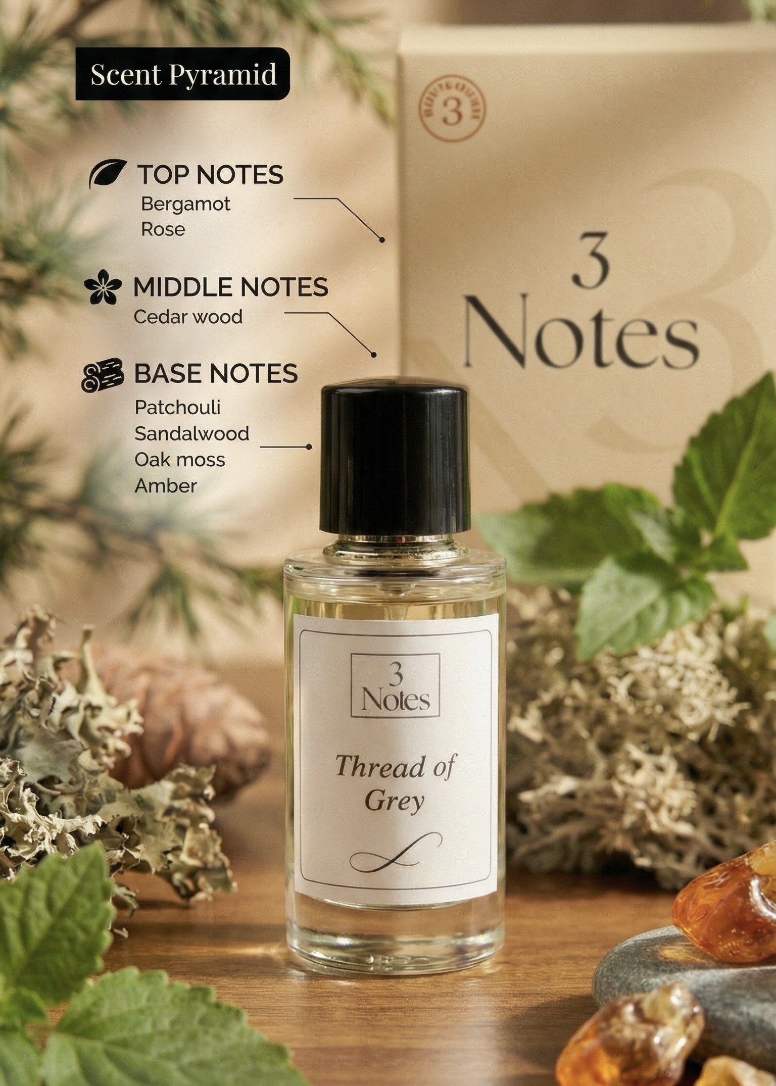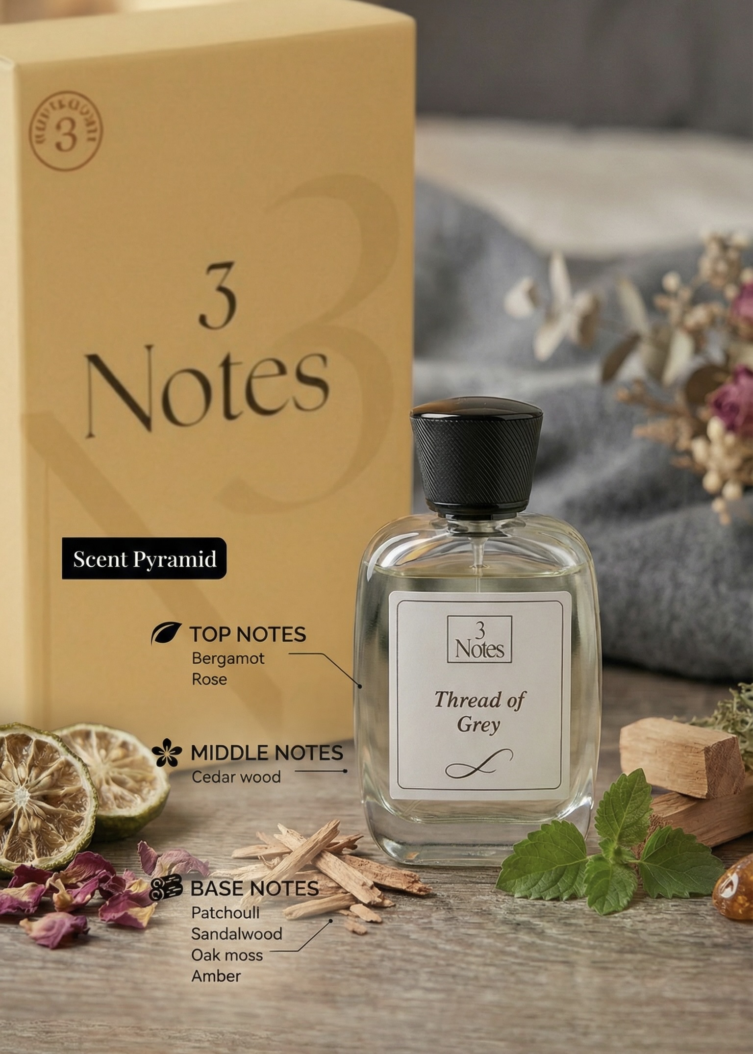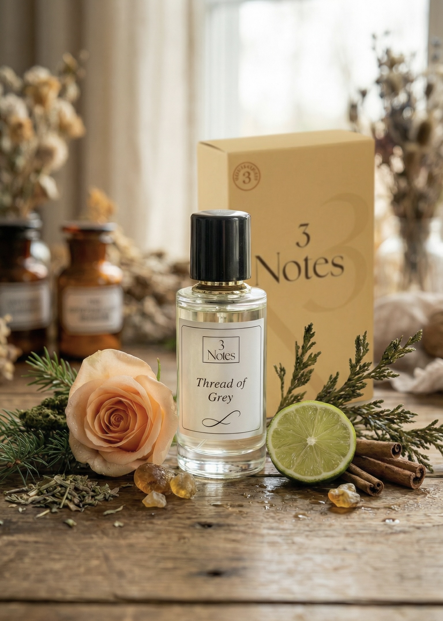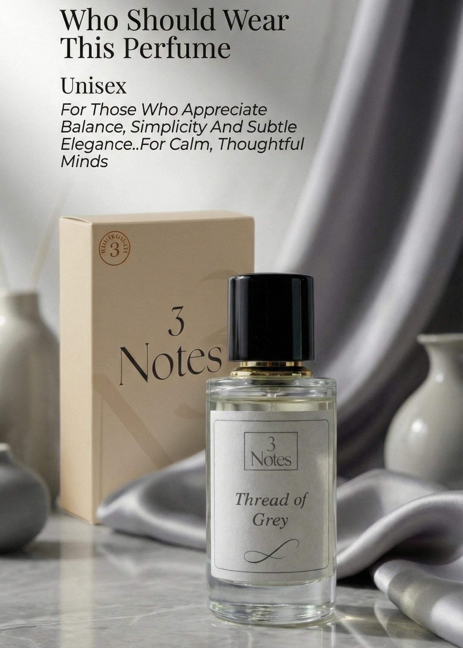 Thread of Grey by 3Notes is a clean, creamy, and charcoal-warm Eau De Parfum crafted for those who seek balance between light and shadow.